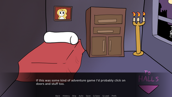 Point and click adventure meets visual novel for this little game of lust, love, and longing. Having just woke up after an incident with amnesia, you need to find answers as to where you are, and how you got here. But your not the only one searching in NightFall Hall. Can you find what it is keeping you here in this mysterious place?